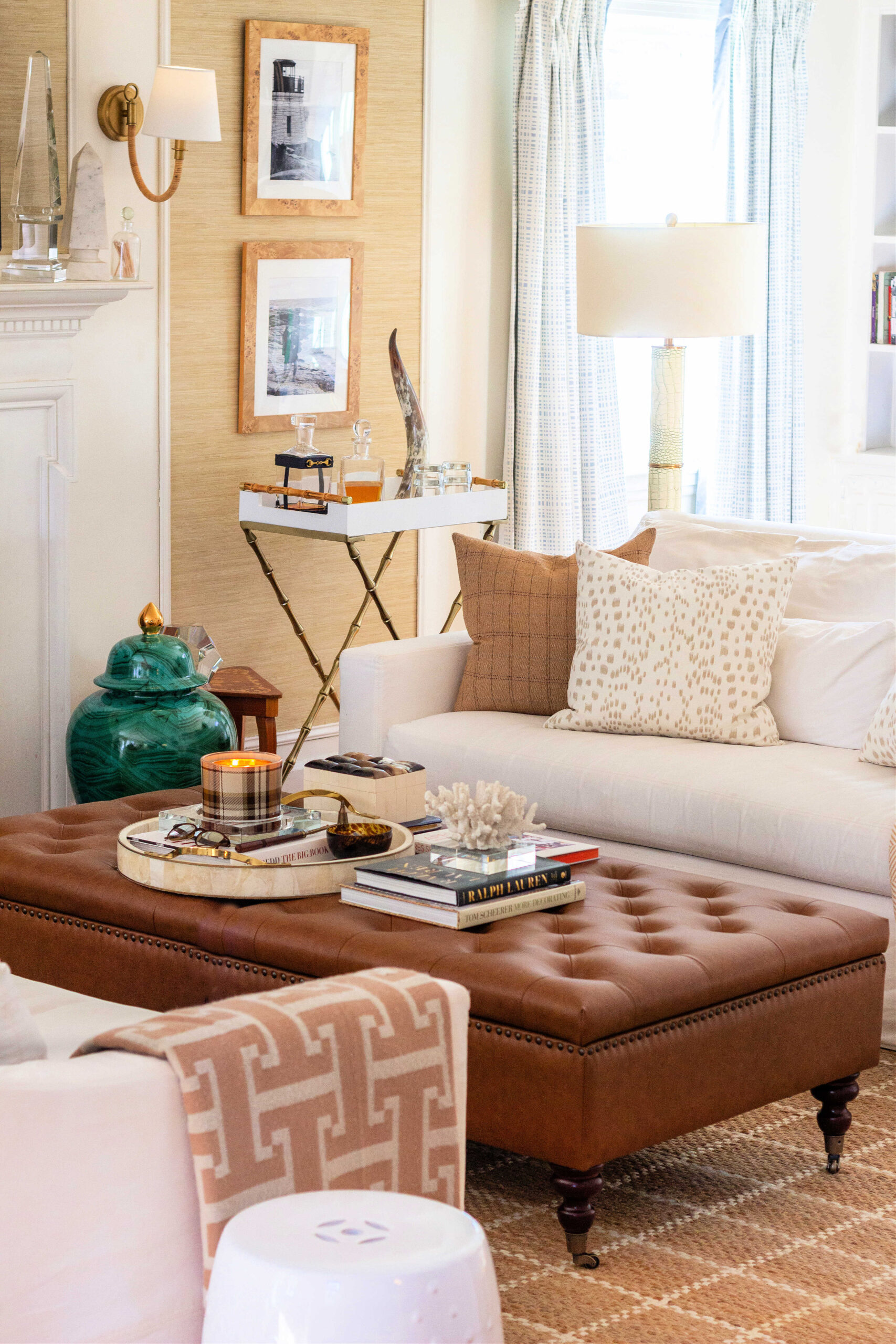 With the holidays being so brilliantly bright and colorful, which of course I adore, I do tend to crave neutrals once bright pops of crimson and greenery are packed away for the quiet and cozy season here. Here’s some subtle changes I made to our living room to cozy it up for winter. I have a thread of coastal influence woven throughout our spaces, and I love how leather, tweeds, and window pane patterns set a moodier tone while still complimenting the existing style and foundation of our room.
